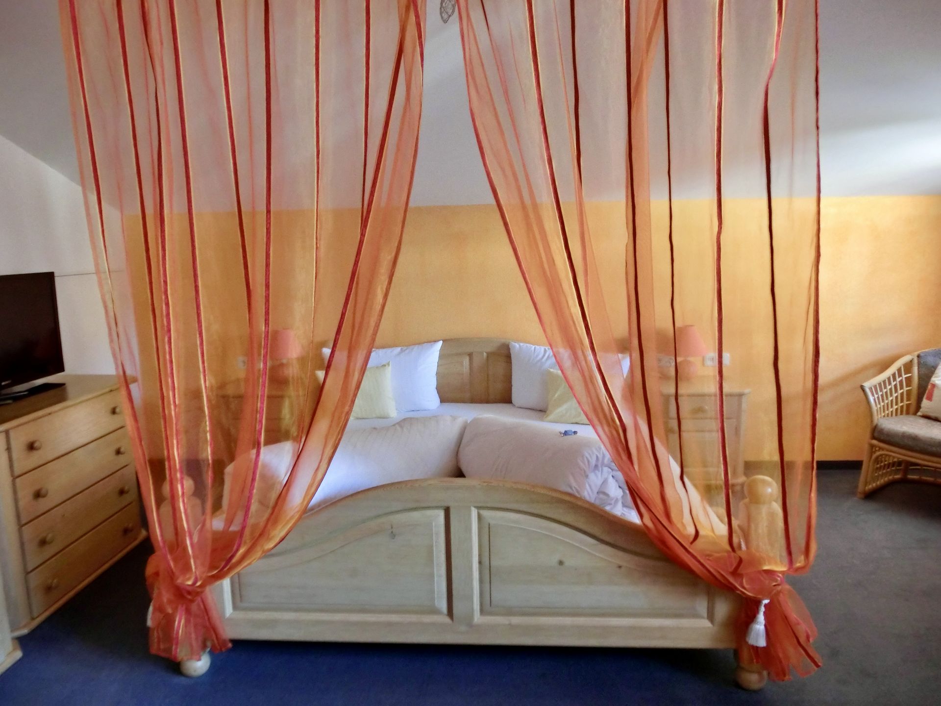Unser Haus verfügt über 9 gepflegte Ferienwohnungen mit hellen Korb- und Naturholzmöbeln.